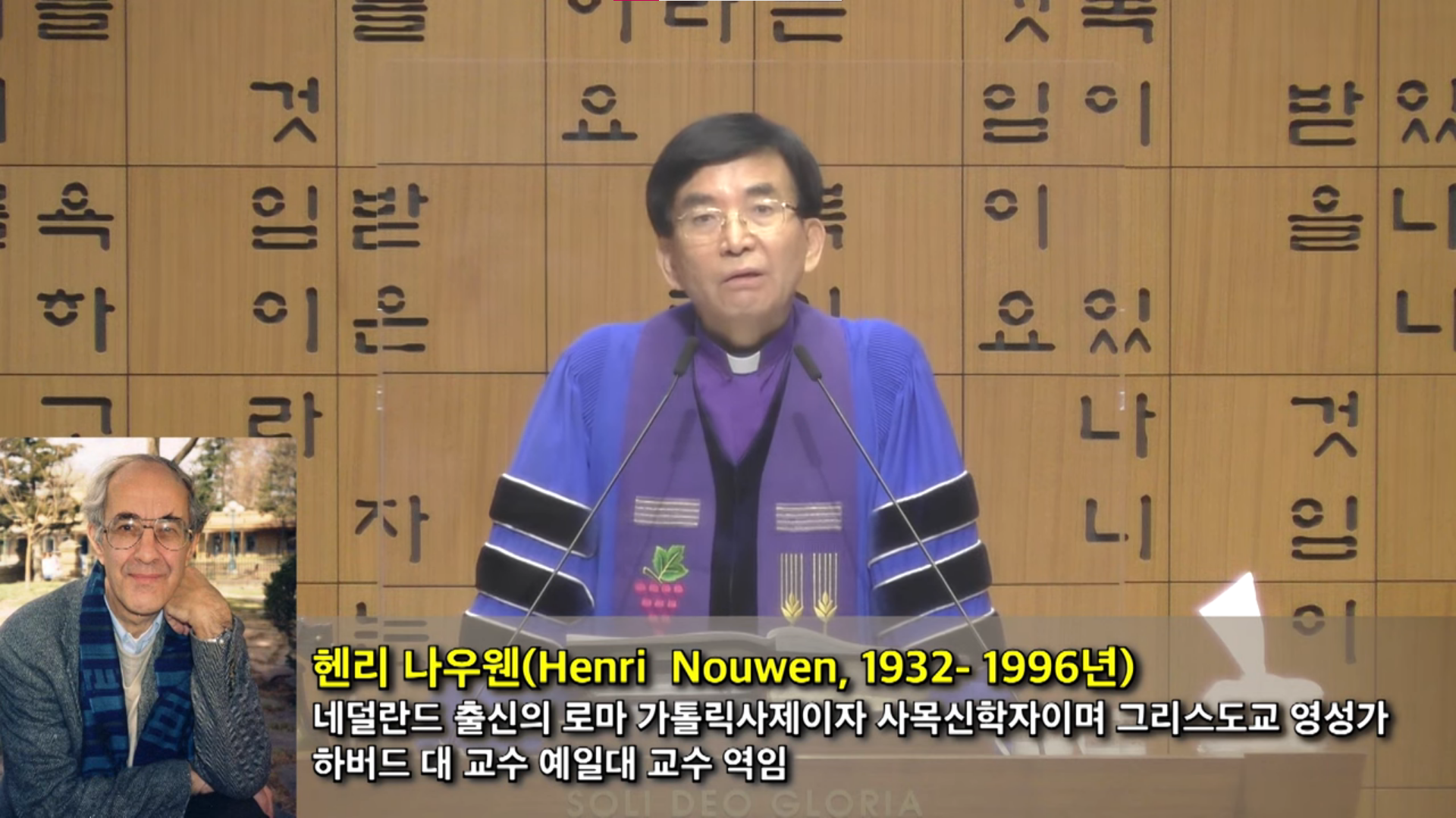 광진교회 유튜브에 올라온 민경설 목사의 2022년 3월 13일자 주일 설교를 보고 착잡한 마음이 들었습니다. 이날 설교는 무려 헨리 나우웬의 이야기로 시작합니다. 하버드 대학의 인기교수이자 수많은 저술을 통해 쌓은 명성을 뒤로하고 라르쉬 데이 브레이크 라는 장애인 공동체에 들어가 이름 없이 빛도 없이 10여년 동안 중증 장애인을 섬기면서 남은 여생을 보낸 헨리 나우웬 말입니다. 그러면서 민 목사는 "헨리 나우웬이 자신의 삶을 통하여 사람들에게 감동을 주었다"고 이야기합니다.