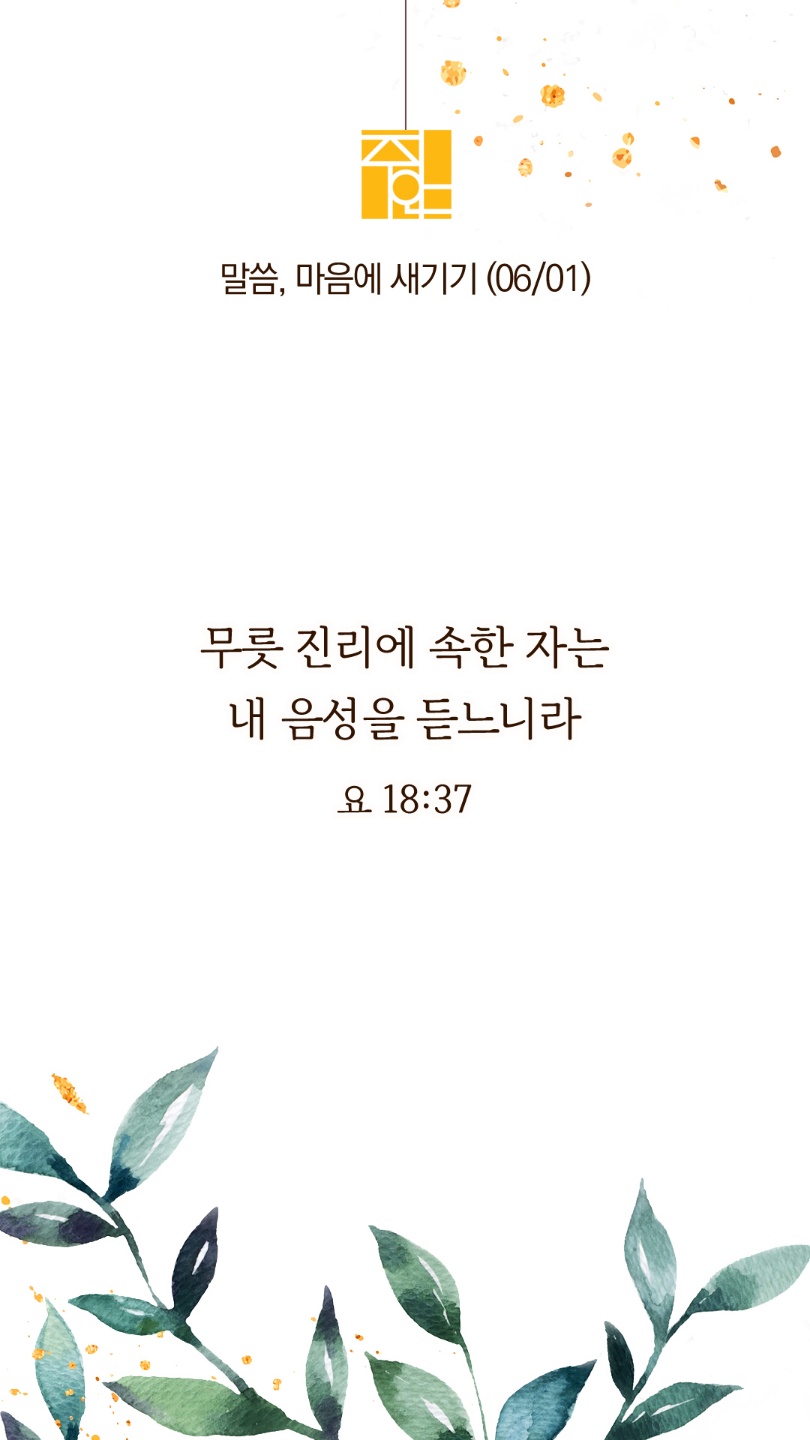 무릇 진리에 속한 자는 내 음성을 듣느니라" 하신대