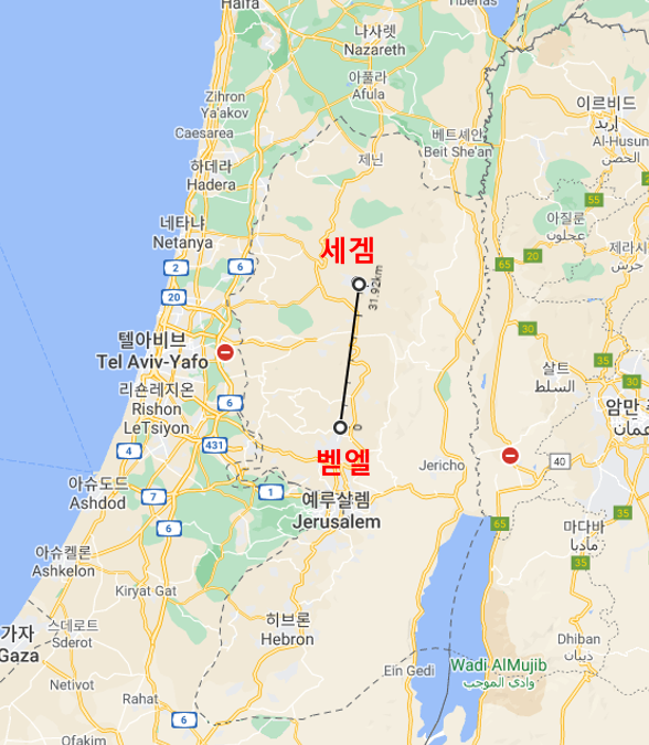 • 벧엘에 제단을 쌓았는데 세겜에 자리를 잡은 야곱