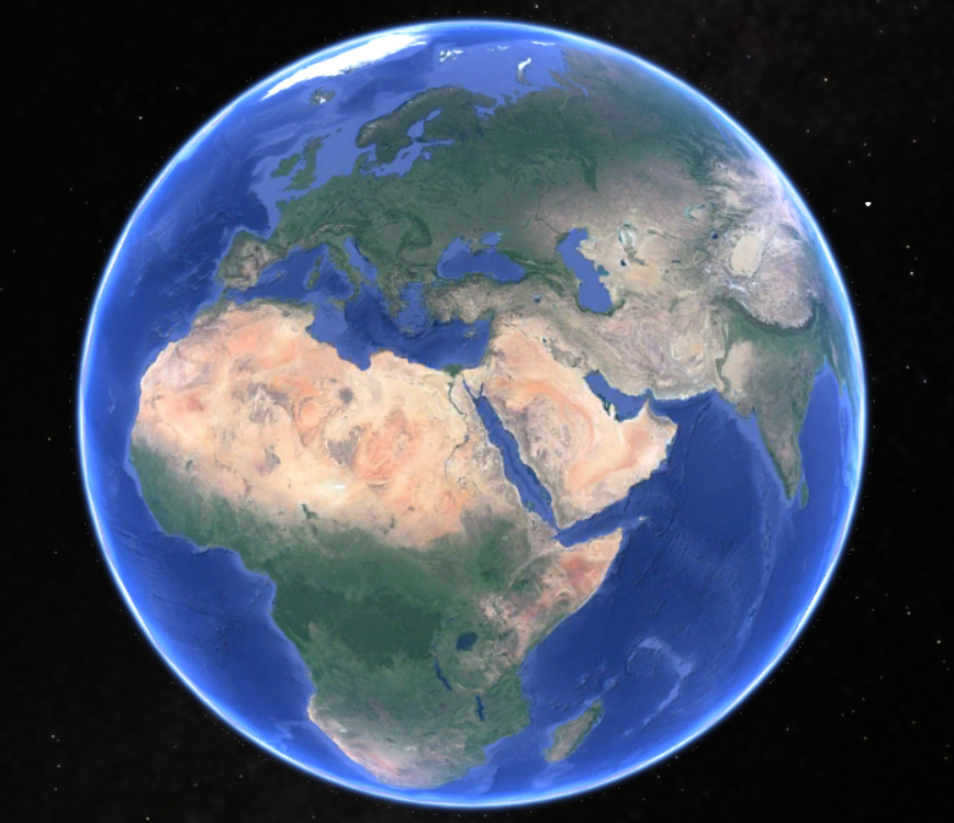 부모 : 자, 지구예요. 아프리카도 보이고 유럽도 보이죠? 여기, 가운데를 더 확대하면 이렇게 되죠.