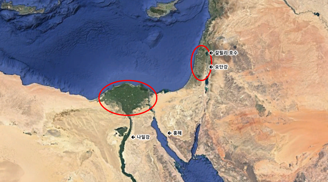 부모 : 원래 이스라엘 백성들은 하나님이 여기서 살아~ 하고 정해주신 가나안 땅에서 살고 있었어요. 가나안 땅이 어디인지 볼까요?
