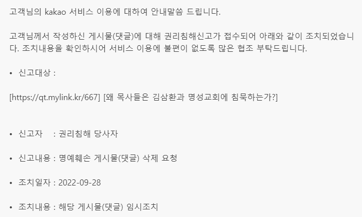 김삼환 목사 관련 글에 대한 3번째 권리침해신고가 들어왔습니다. 정말 열심히들 하시네요. 하지만 아무 소용 없습니다. 티스토리에서는 절차대로 조치한 거고, 저 역시 절차대로 복구 요청을 할 겁니다. 그동안 권리침해신고가 들어온 게시물들도 모두 복구됐습니다.